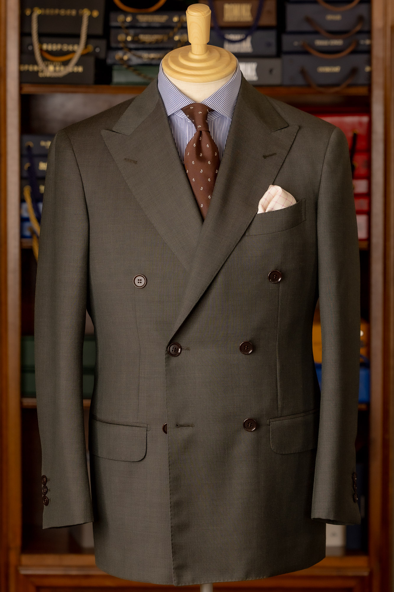 ご用途やお好みを伺い、生地、ディテール、裏地、ボタンなどをお選びいただきます。