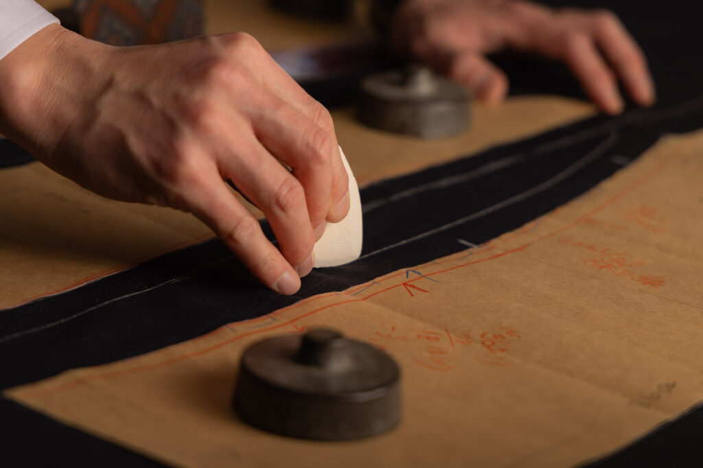 体型を詳細に計測し、お客様専用の型紙を一から作成します。
